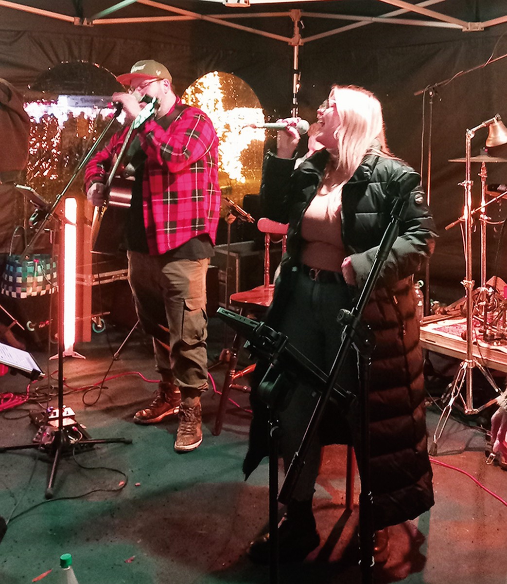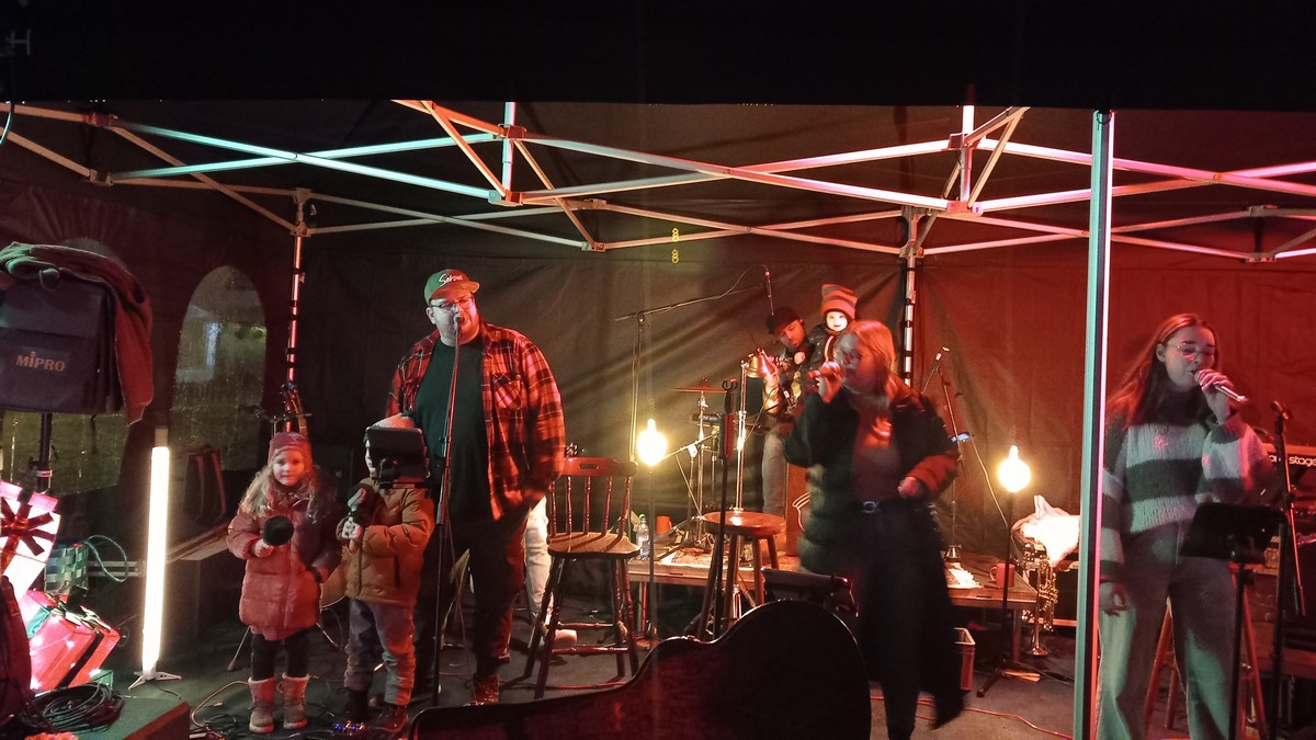 Unter der Leitung von Gereon Fuchs betrat dann um 17 Uhr der Musikzug Wächtersbach den Musikpavillon und unterhielt die Besucher. Ab ca. 19.30 Uhr übernahmen WKKW und brachten so richtig Stimmung auf den Platz. Auch der letzte Zentimeter war nun mit Besuchern gefüllt und die Stimmung großartig! Rock- und Popsongs mit Weihnachtsliedern gemischt - hier war für jeden Geschmack etwas dabei. Auch die kleinen Besucher kamen auf ihre Kosten. Einige von ihnen durften zu „In der Weihnachtsbäckerei“ mit auf die Bühne und hatten sichtlich Spaß dabei.
