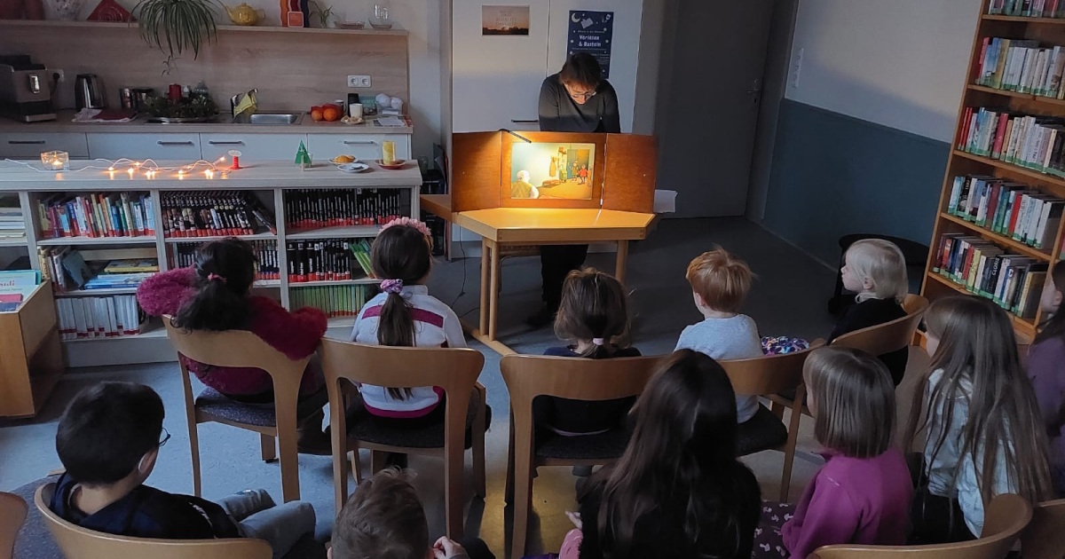 Der Nachmittag begann mit einer Kamishibai-Vorführung des Bilderbuchs „Ein Fest für alle“. Mit großen, farbenfrohen Bildkarten und einer lebendigen Erzählweise gelang es der Vorleserin, die jungen Zuhörer sofort in den Bann der Geschichte zu ziehen. Die Kinder lauschten aufmerksam, stellten Fragen und kommentierten begeistert die Szenen, in denen Freundschaft, Zusammenhalt und ein besonderes winterliches Fest im Mittelpunkt standen.