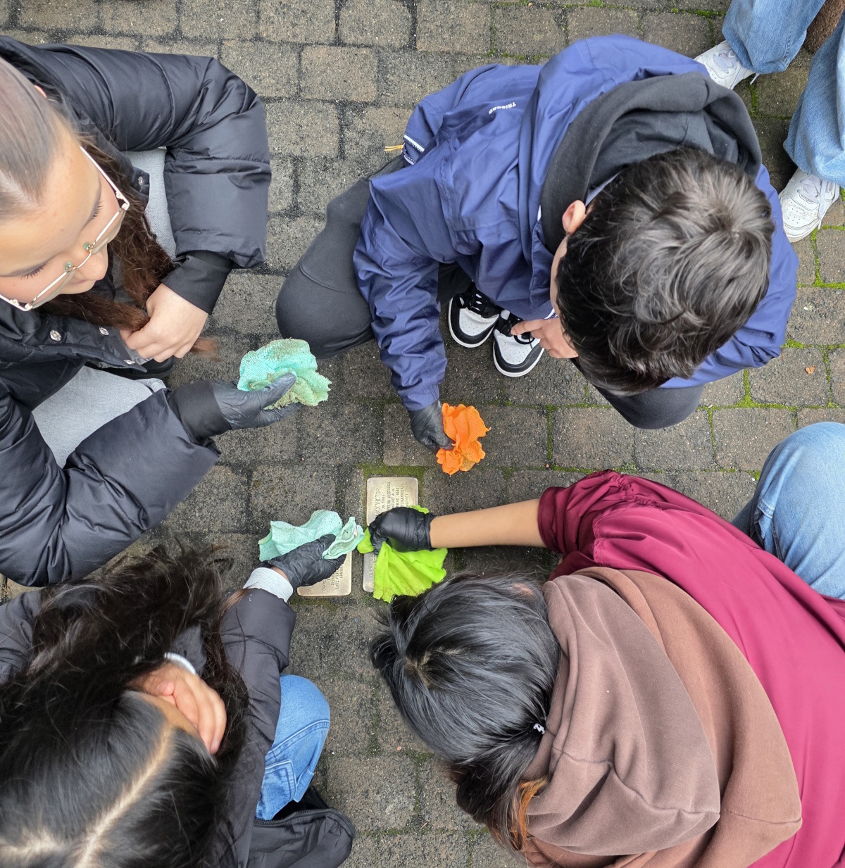 Bad Soden-Salmünster. Schülerinnen und Schüler des Wahlpflichtkurses Geschichte im Jahrgang 9 der Henry-Harnischfeger-Schule Bad Soden-Salmünster begaben sich anlässlich des bundesweiten Gedenktages am 9. November auf den Weg und reinigten die Stolpersteine in Salmünster.