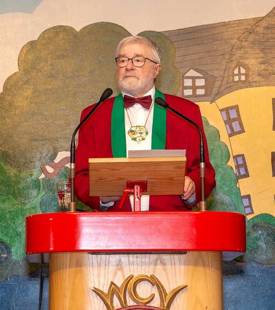 Werner Ach bemerkte in seiner gewohnt spitzzüngigen Art, dass das politische Beben im In- und Ausland auch die Karnevalisten nicht kalt lässt. Was die Lokalpolitik, insbesondere in Wächtersbach, angeht, gab er eine kleine Vorschau auf den künftigen Bürgerservice 24/7 der Stadt zum Besten. Nachts anrufend, würde man wohl an einen dem WCV-Sitzungspräsidenten Nicky Kailing angelehnten digitalen Telefonassistenten geraten, der einen stundenlang über alle Satzungen, Richtlinien und Verordnungen der Stadt Wächtersbach informiere. Egal, ob Feldwegesatzung, Elternbeiratssatzung oder Stadtwappensatzung – wenn man es dann endlich durchs Menü geschafft hat, ist das Büro des Bürgerservice am Morgen bestimmt schon wieder besetzt.