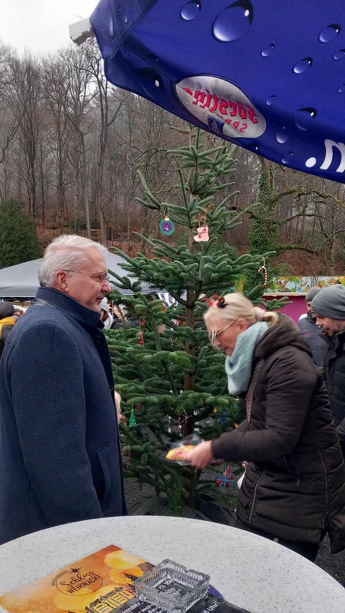 Er wies auf die festlich geschmückte Altstadt und den Brunnen vor dem Alten Rathaus (geschmückt vom Altstadtförderverein) hin. Ebenso auf die Möglichkeit, in der Altstadt die Geschäfte zu besuchen oder sich bei Café Tally’s, NINAS sowie beim Lädchen Kreatives Chaos zu stärken. Der Altstadtförderverein war in der Bachstraße 3 mit einem Glühwein-Stand dabei und verkaufte Kunstwerke sowie den Altstadtkalender.