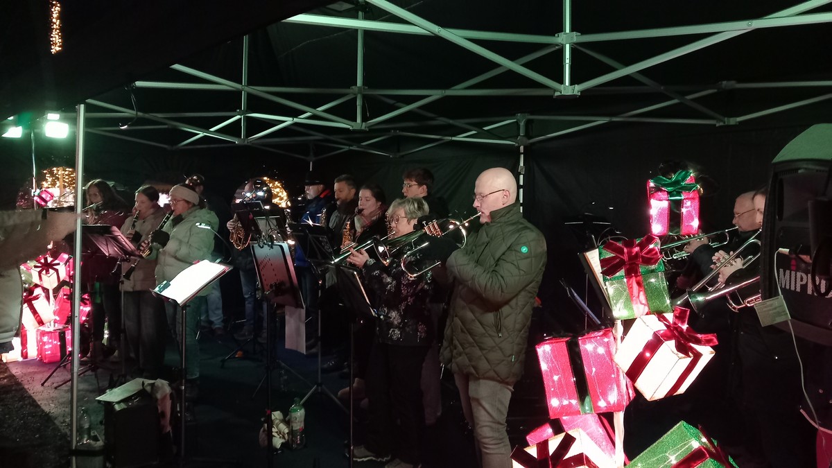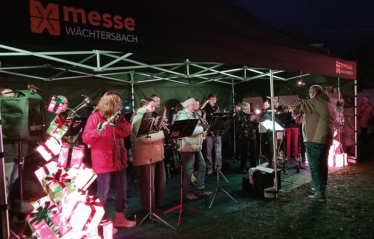 Unter der Leitung von Gereon Fuchs betrat dann um 17 Uhr der Musikzug Wächtersbach den Musikpavillon und unterhielt die Besucher. Ab ca. 19.30 Uhr übernahmen WKKW und brachten so richtig Stimmung auf den Platz. Auch der letzte Zentimeter war nun mit Besuchern gefüllt und die Stimmung großartig! Rock- und Popsongs mit Weihnachtsliedern gemischt - hier war für jeden Geschmack etwas dabei. Auch die kleinen Besucher kamen auf ihre Kosten. Einige von ihnen durften zu „In der Weihnachtsbäckerei“ mit auf die Bühne und hatten sichtlich Spaß dabei.