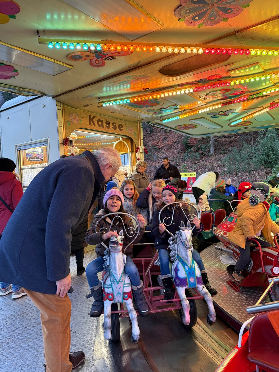Er gab einen kurzen Überblick auf das Programm und dann übernahmen die Kindergärten, die wieder traditionell Weihnachtsschmuck mit den Kids gebastelt haben. Dieser wurde dann eifrig an die beiden Tannenbäume angebracht. Die Elisabeth-Curdts-Tagesstätte, die Kita Regenbogen und die Kindertagesstätte Abenteuerland waren in diesem Jahr dabei. Als Dankeschön erhielt jedes Kind einen Gutschein für das wunderschöne und große Karussell, welcher direkt eingelöst wurde. Besonders beliebt waren hier die fliegenden Untertassen und Raketen, weil man sie manuell hoch fliegen lassen konnte. Auch der acht Meter grosse Weihnachtsmann neben dem Karussell kam bei den kleinen Besuchern sehr gut an.