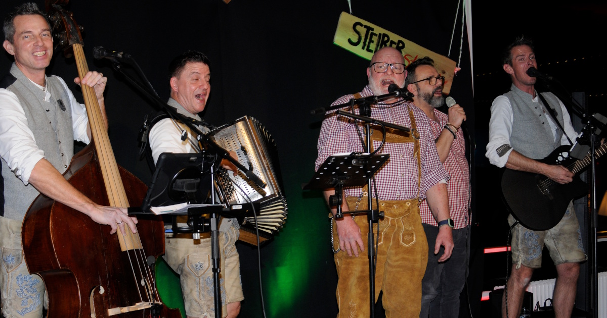 Anders als Monego selbst, dessen österreichische Wurzeln („I bin a hoiber Steirer. Steirer san von kerniger Natur.“) an den beiden Abenden mehrfach zum Thema werden: Da ist zum einen Vater Franz, der sich unter die Gästeschar mischt und damit den Prozentsatz der österreichischen Gäste am Samstag um 100 Prozent erhöht. Mehr sind es am Freitag, an dem zumindest zwei Grazer Gäste mit dabei sind, die nicht nur die Band, sondern auch die Auftritte des Gastgebers feiern, der mit Fendrichs „I am from Austria“ und „Steirermen san very good“ (Stoakogler) abräumt. Keine Viertelstunde ist vergangen, schon sind die ersten Gäste am Mitsingen, Klatschen, Feiern. „Der könnt des heut auch machen“, sind sich deshalb die drei Musiker von „Koi Limit“ einig, als sie schließlich die Bühne entern. Monego allerdings muss ablehnen, sowohl als Moderator als auch als Fahrer. Er hat genug zu tun, Kasnocken, Kaspressknödel und Steirische Brettljausen mit seinem Team vorzubereiten, Grüne Veltiner und Moric22 zu reichen, Stamperl einzugießen.