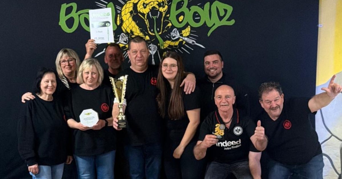 Wächtersbach. Am 14. März nahm der EFC Adlerauge 09 am Dart-Turnier der Vereine für den guten Zweck beim „Bad Boyz e.V.“ in Hesseldorf teil, sicherte sich souverän den ersten Platz, und nahm die Urkunde und den Pokal mit riesiger Freude in Empfang. Alle Infos zum EFC auf der Homepage https://efc-adlerauge-waechtersbach.jimdofree.com