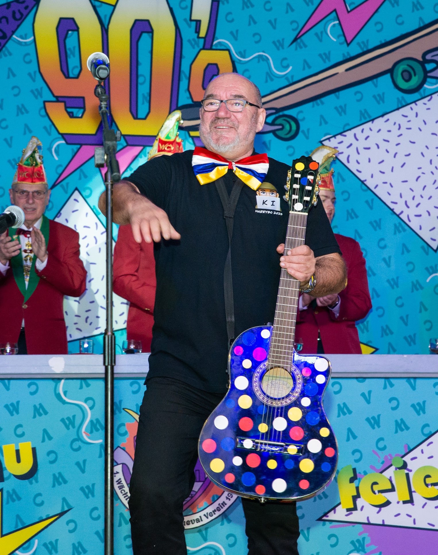 Wächtersbach. Getreu dem diesjährigen Motto „Die 90er mit viel Helau feiern wir beim WCV“ begrüßte Sitzungspräsident Nicky Kailing das närrische Publikum am 8. Februar zum 1. Lachsalon in der Heinrich-Heldmann-Halle mit Erinnerungen, die fast jedem bekannt vorkamen. Sei es, dass wir damals die Hits aus dem Radio noch mit dem Kassettenrecorder aufgenommen und gehofft haben, dass der Moderator nicht dazwischen quatscht oder das wir nachts stundenlang „Snake“ auf unseren Nokias 3210 spielten und jeder ein eigenes Haustier namens Tamagotchi hatte.