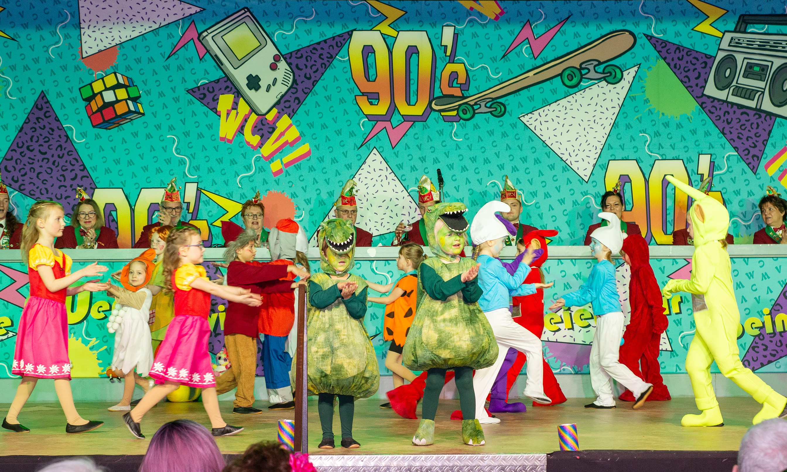 Mit Kindheitserinnerungen ging es dann auch gleich auf der Bühne weiter. Die Kleinsten vom WCV brachten so manchen Kindheitshelden ihrer eigenen Eltern auf die Bühne. So reichten sich das Sandmännchen, Heidi, Schnappi das kleine Krokodil, die Schlümpfe, die Teletubbies, Wilma & Fred Feuerstein und Benjamin Blümchen zu einem lustigen Tanz die Hände und rührten damit die Herzen des Publikums.
