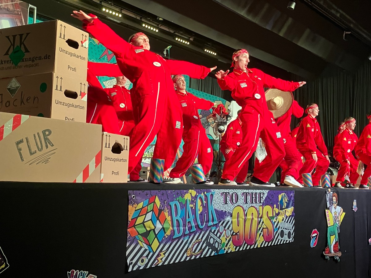 Jugenderinnerungen an Bravopostern und Groupieverhalten wurden dann mit dem Tanz der „Meddeler Feger“ geweckt, die zu einem Medley von den Backstreet Boys den Saal noch einmal kräftig zum Beben brachten.
