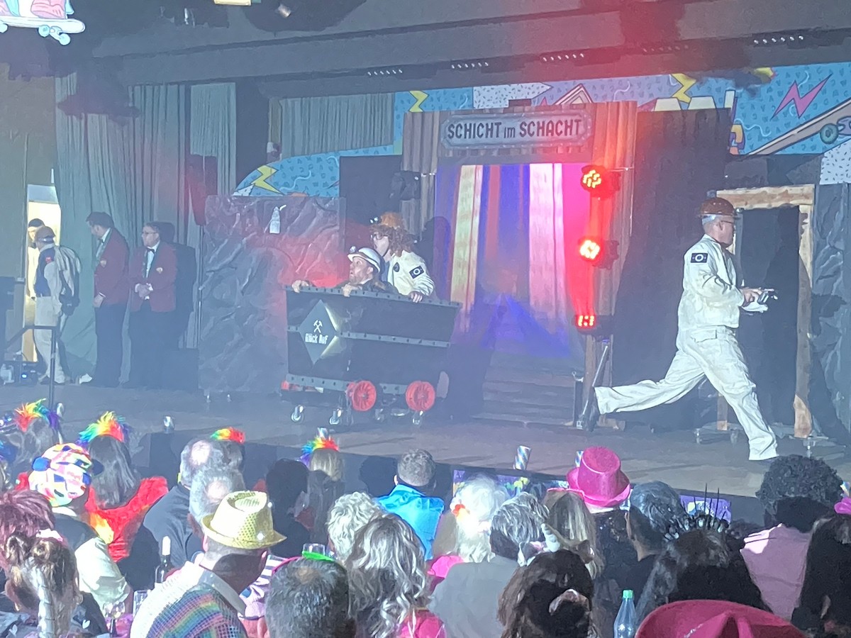 Das Männerballett aus Assenheim nahm das Publikum mit auf eine rasante Fahrt in den Bergbau und zeigte bei ihrem Tanz „Schicht im Schacht“, was einem unter Tage so alles passieren und wem man dort so alles begegnen kann.